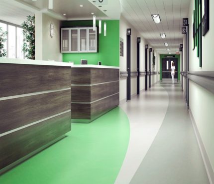 Marmoleum, bir linolyum markası, 97% doğal hammadde, 72% yenilenebilir hammadde (10 yıl içinde tekrar yetişen) ve 43% geri dönüştürülmüş malzeme içerir bu şekilde el değmemiş ham madde kullanım gereksinimi azaltır.