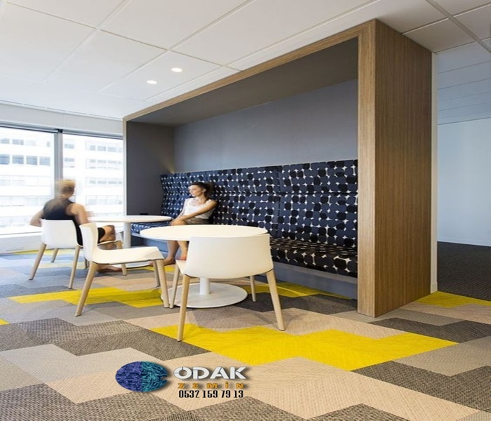 Halı Zemin Kaplama : Halılar, ofislerde popüler bir seçimdir çünkü ses emicidir ve ayakları rahatlatır. Ayrıca, geniş renk ve desen seçenekleri sunar, böylece işyerinizin tasarımına uygun bir seçenek bulabilirsiniz. Ancak, halılar zamanla kirlenebilir ve lekeleri daha fazla tutabilir.